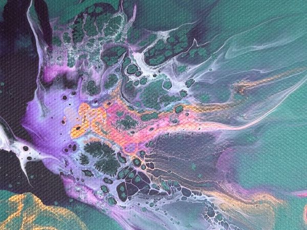 Each painting I make is one of a kind, crafted with care and attention in the peaceful setting of my garden cabin. My work offers a blend of modern, mixed media, abstract fluid style art with the organic essence of the natural world. Overseen by my little scruffy dog called Daisy who loves to watch me paint.